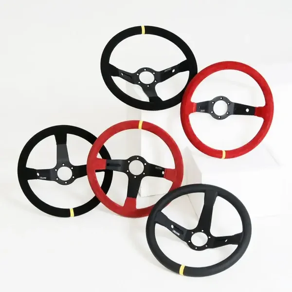 LTEC 3-Spoke Steering Wheel Black Leather 90mm Dish 35cm